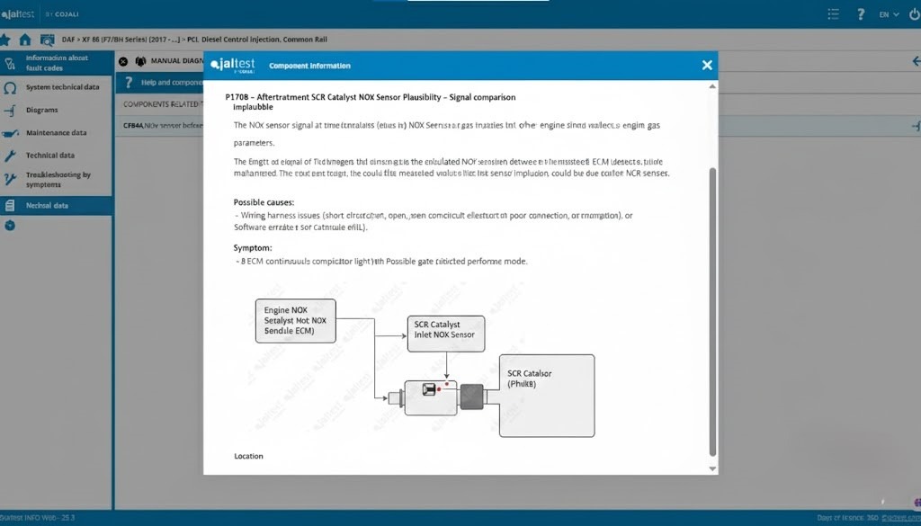 Diagnosing fault code P170B on a DAF XF Euro 6 becomes simple with a clear method and the right tools. Thanks to Jaltest Diagnostic and Jaltest INFO Web, you can quickly go from identifying the problem to implementing the solution.