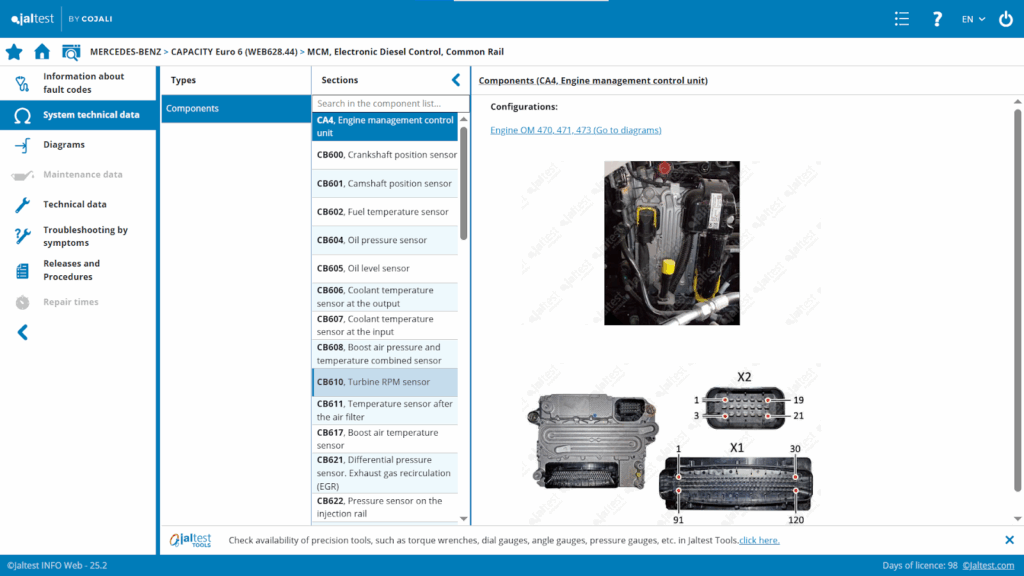 When a Mercedes Citaro bus shows an engine warning light while still running normally, immediate Mercedes Citaro engine fault diagnosis is essential. Waiting for a breakdown or clearing the code can lead to extended downtime and higher repair costs. Jaltest INFO Web helps technicians interpret every fault correctly and resolve issues quickly.