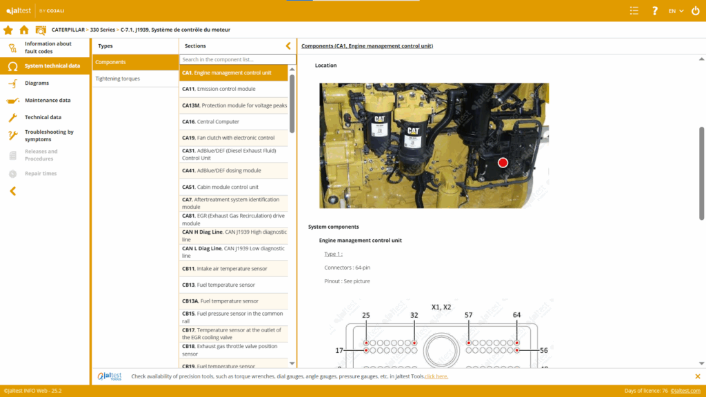With Jaltest INFO Web, construction machinery diagnostics are clear, complete, and fast.