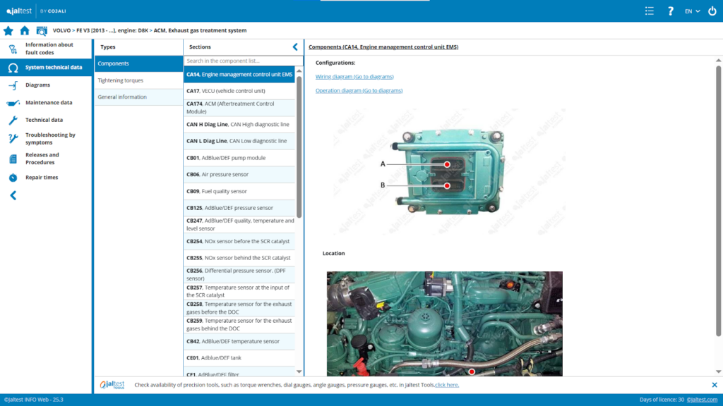 Old paper manuals or random searches… but nothing is as fast as Jaltest INFO Web. The platform also works for buses, trailers, commercial vehicles, and even off-road and agricultural machines.